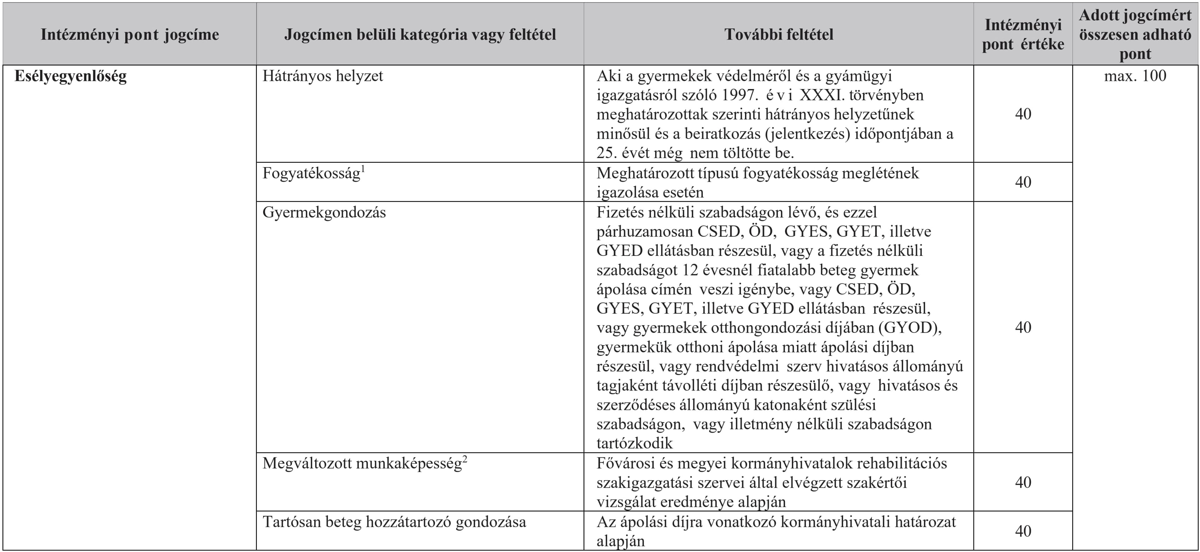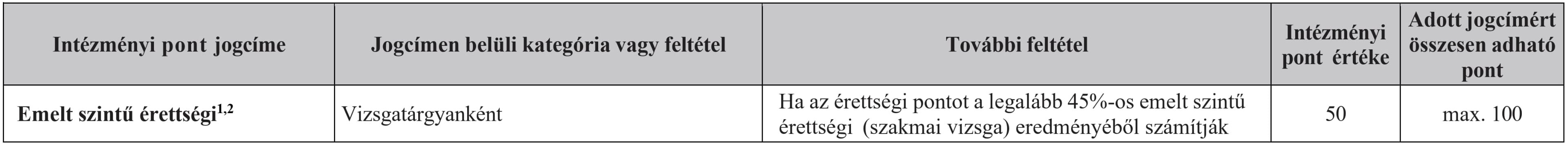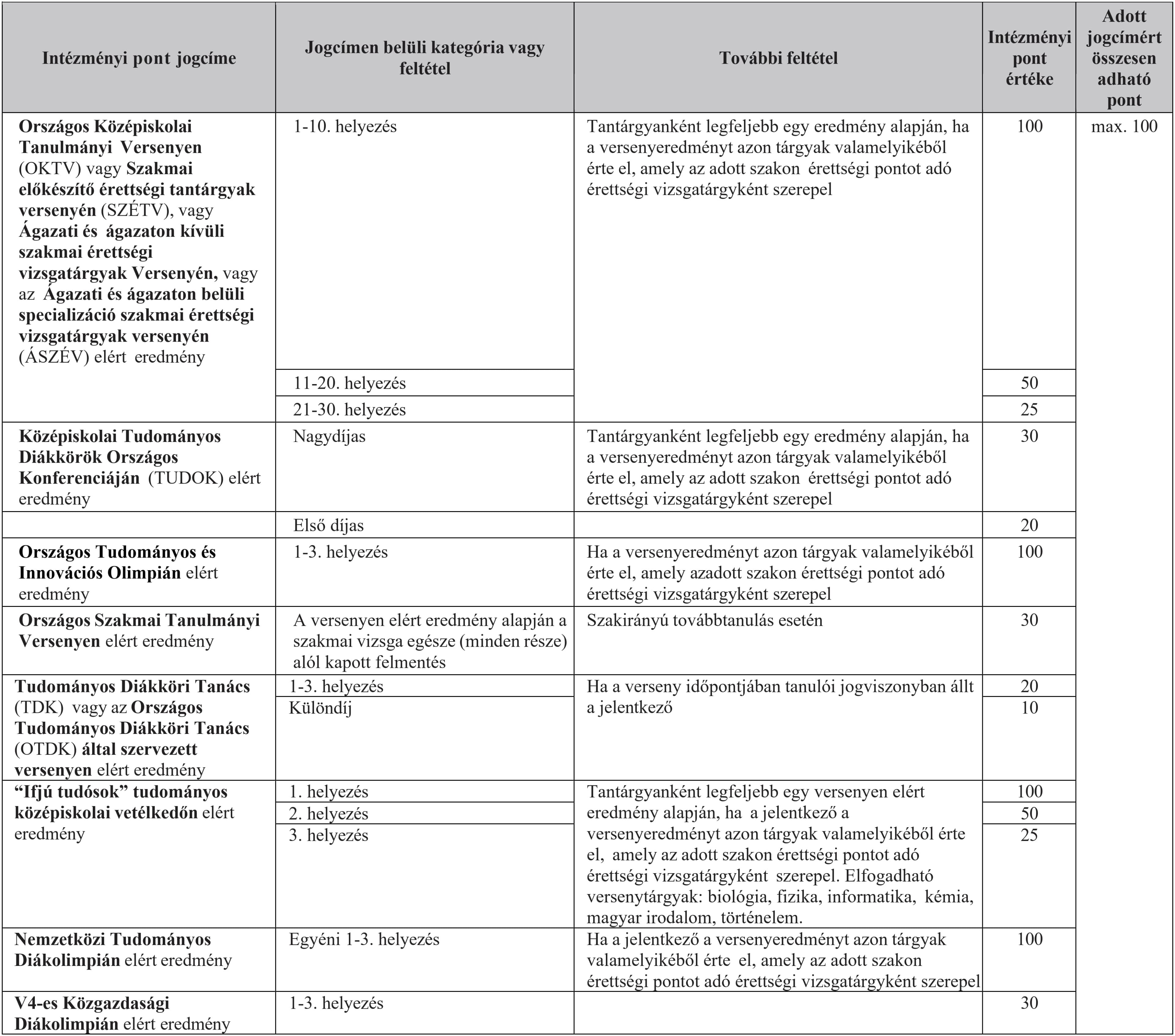 Intézményi pontként maximum 100 pont szerezhető. Az intézményi pontok jelentősége a BGE-n abban áll, hogy legtöbb szakunkon ezek révén lehet elérni vagy bebiztosítani az állami ösztöndíjas helyekre való bejutást.