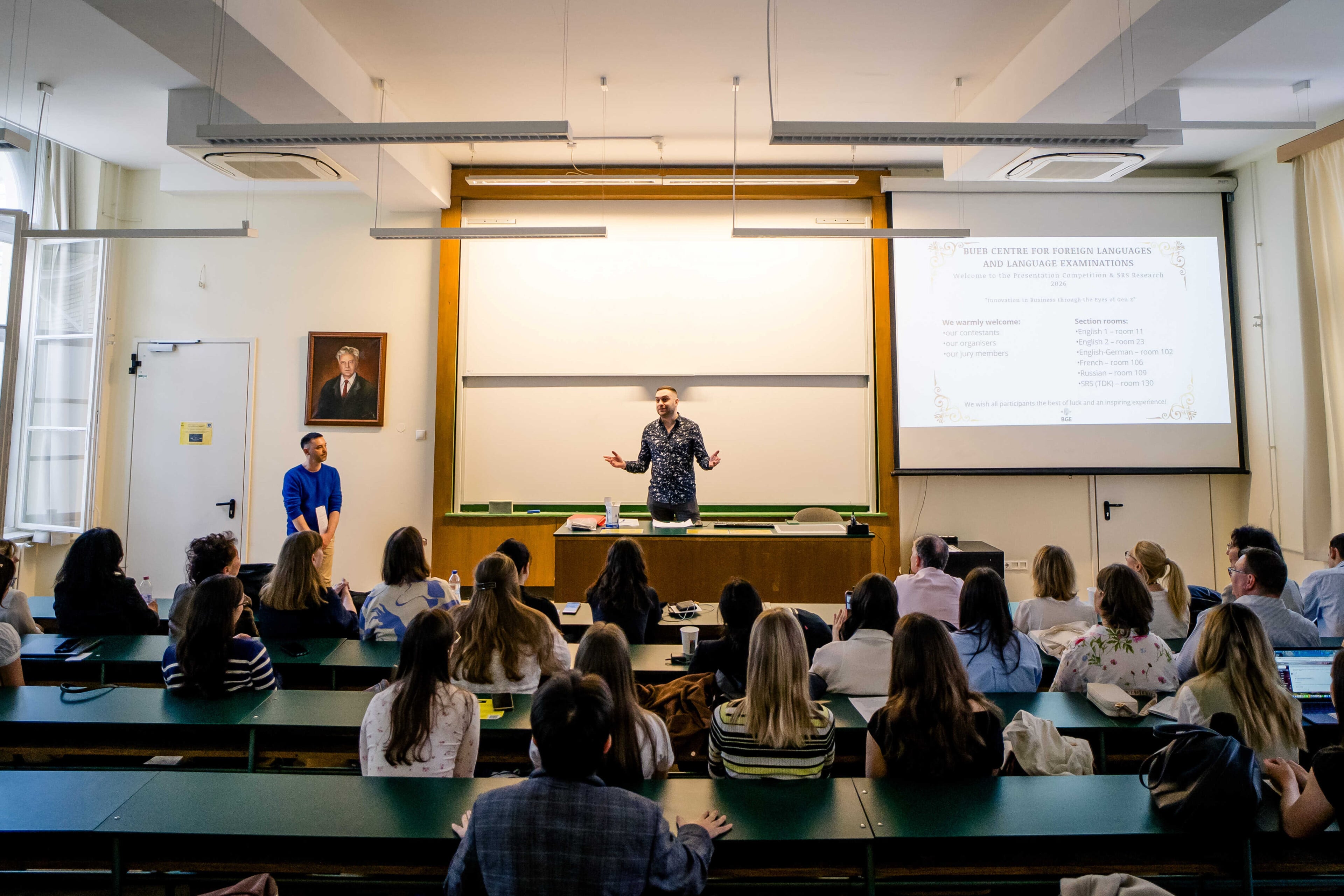 Az Idegennyelvi és Nyelvvizsga Központ, valamint az NGK Tudományos Diákkör közös szervezésében megvalósult eseményen közel 50 hallgató 6 szekcióban, 4 idegen nyelven – angol, német, orosz, francia - mérte össze prezentációs tudását. A TDK szekcióban pedig a TDK-ra készülő hallgatók mutathatták be választott ötleteiket, témáikat, és kaphattak visszajelzést a zsűritől munkájuk folytatásához. A hallgatók aktuális és előremutató témákat dolgoztak fel az üzleti innováció területéről. Az előadások jól strukturáltak, vizuálisan is kreatívok voltak, és sok esetben új nézőpontokat hoztak a választott témákhoz.