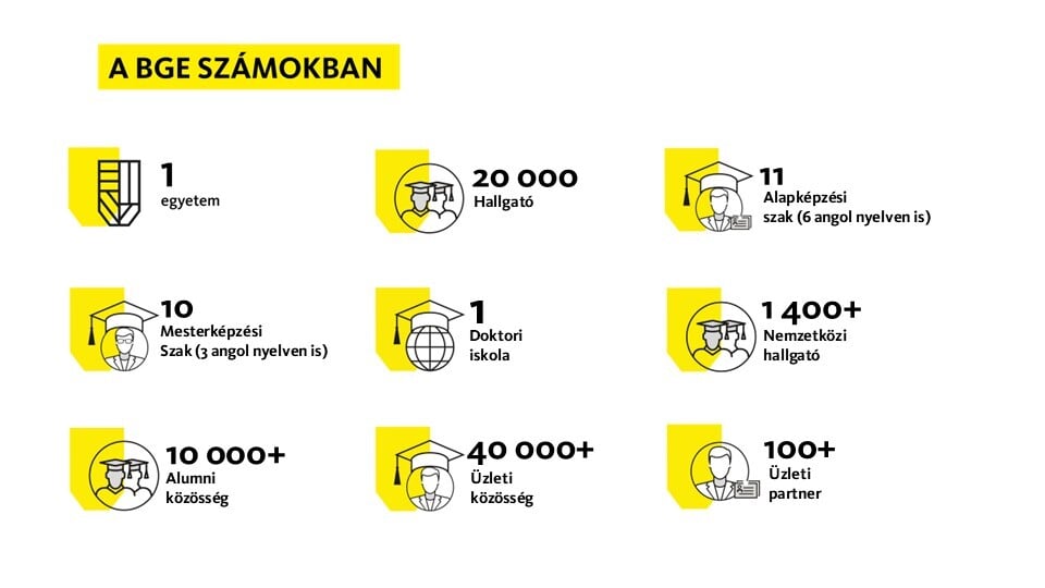 Magyarországon az üzleti szakemberek között a legtöbbnek BGE-s diplomája van. Volt hallgatóink közössége több tízezer olyan emberből áll, akik a mai üzleti élet aktív szereplői, akik nagyban hozzájárulnak a magyar gazdaság és a társadalom fejlődéséhez, és sokan közülük szívesen segítik az egyetem jelenlegi hallgatóit, örömmel kínálnak munkalehetőséget is a számukra. Célunk, hogy a BGE egy életre szóló közösségi teret biztosítson egykori hallgatóinak a kapcsolattartásra, az élethosszig tartó tanulásra, az újabb BGE-s generációk megismerésére. Csatlakozz Te is a közösséghez, és legyél Te is pár év múlva a BGE alumni aktív tagja!